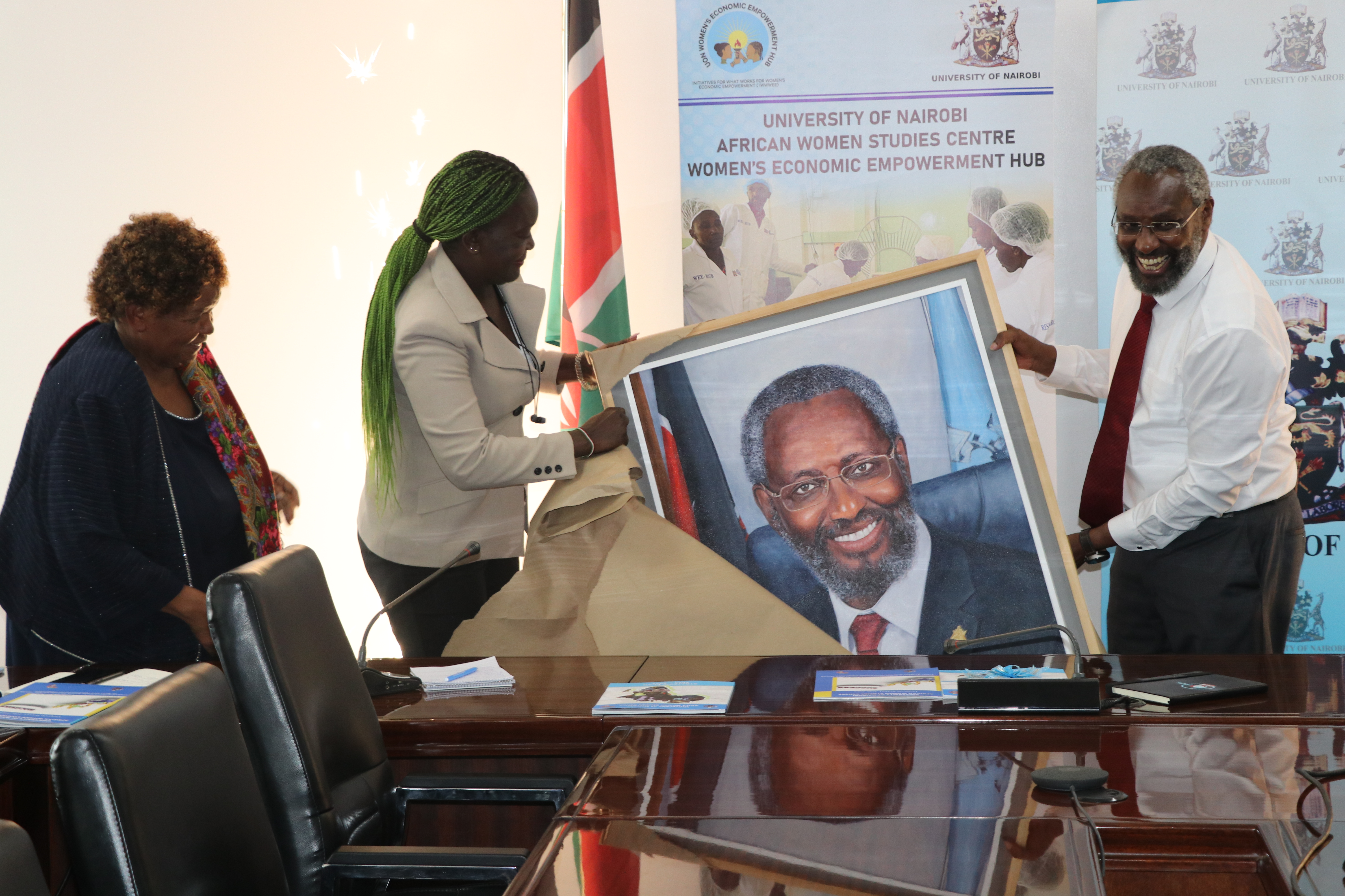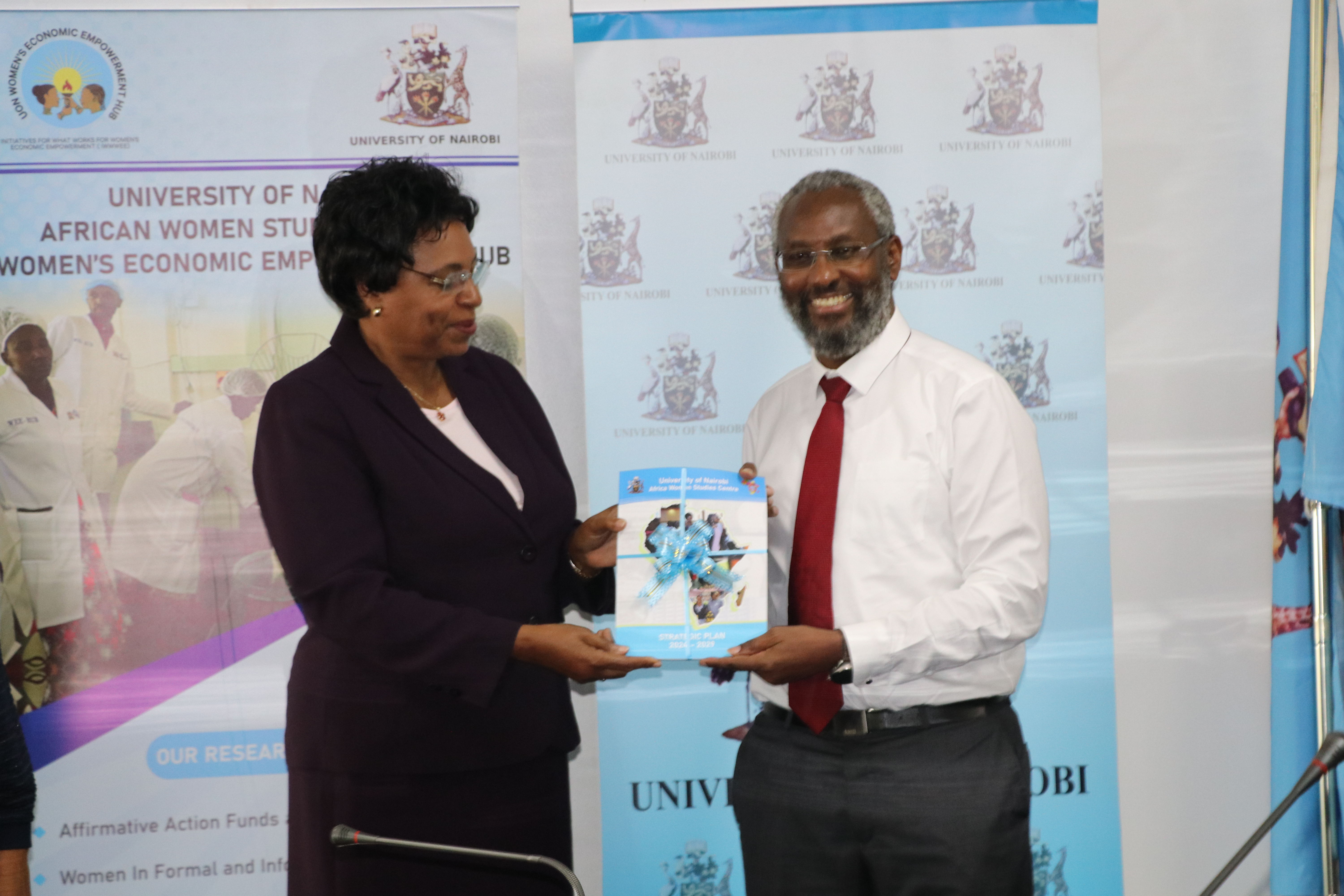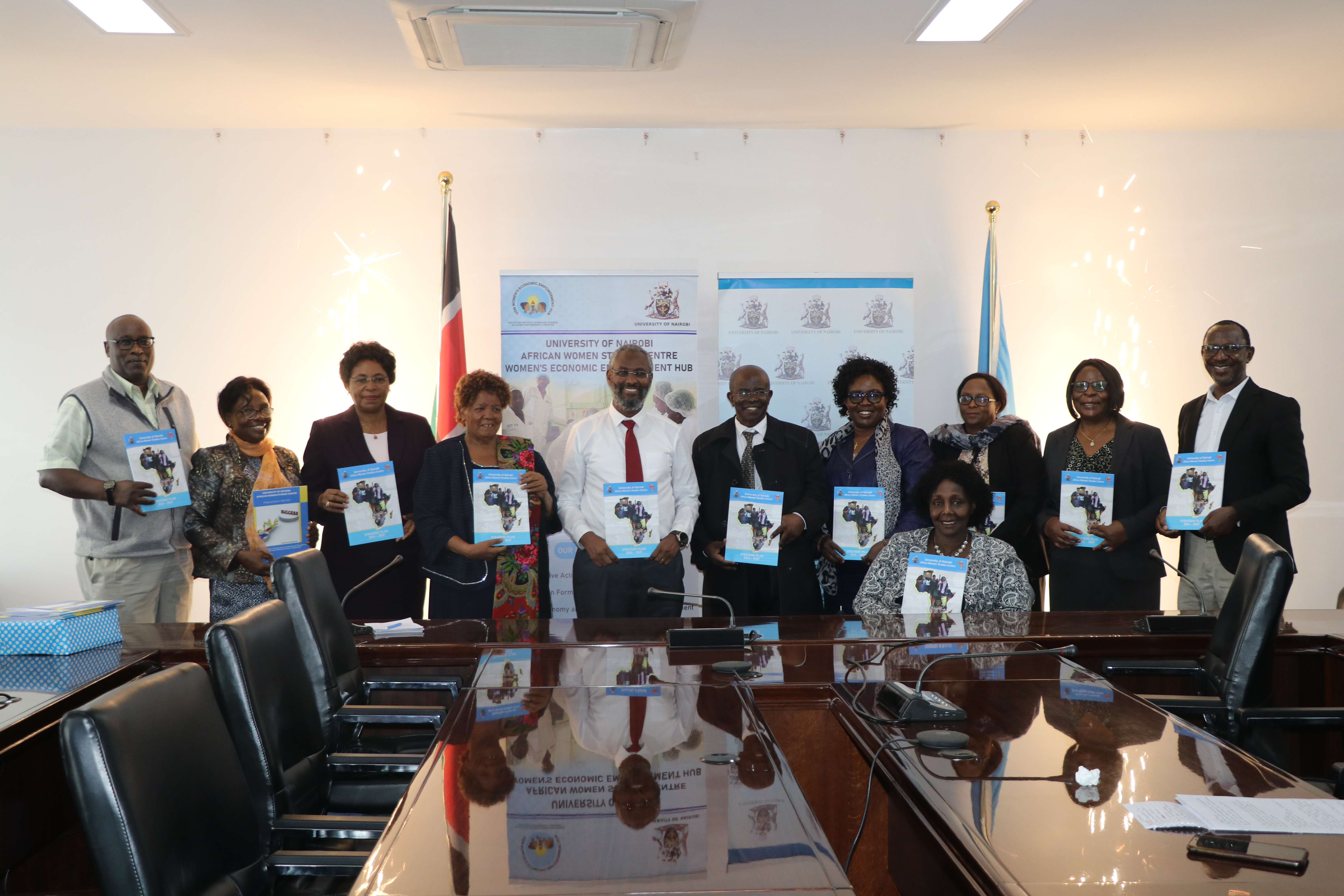 On 24th June 2024, the WEE Hub team, led by Prof. Wanjiku Kabira, gathered at the University of Nairobi Main Campus to officially launch the AWSC Strategic Plan 2024-2029. The Strategic Plan, which outlines the key programs and initiatives for the next five years, was presented to the UoN Vice Chancellor, Prof. Stephen Kiama.