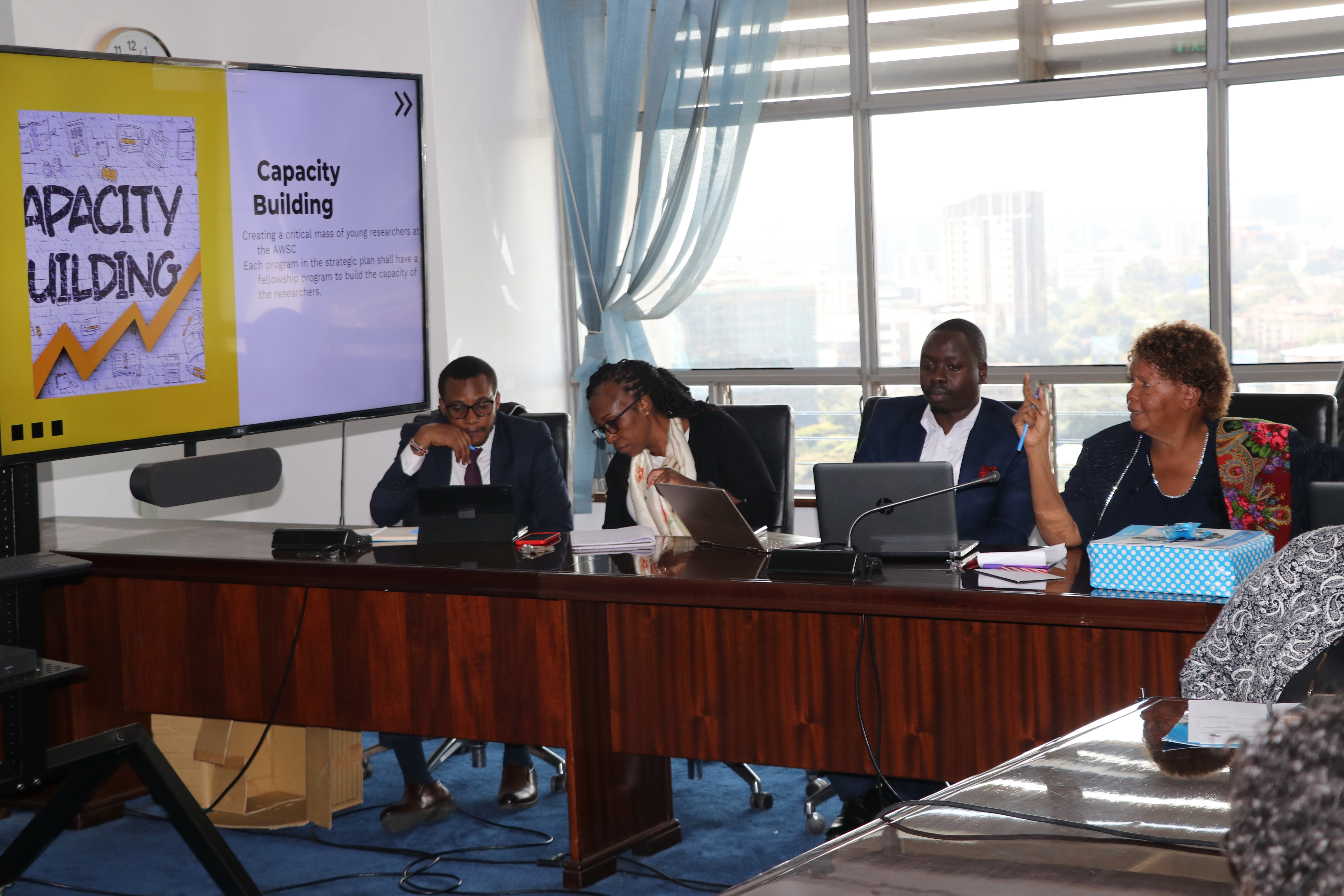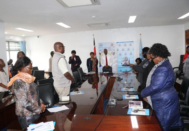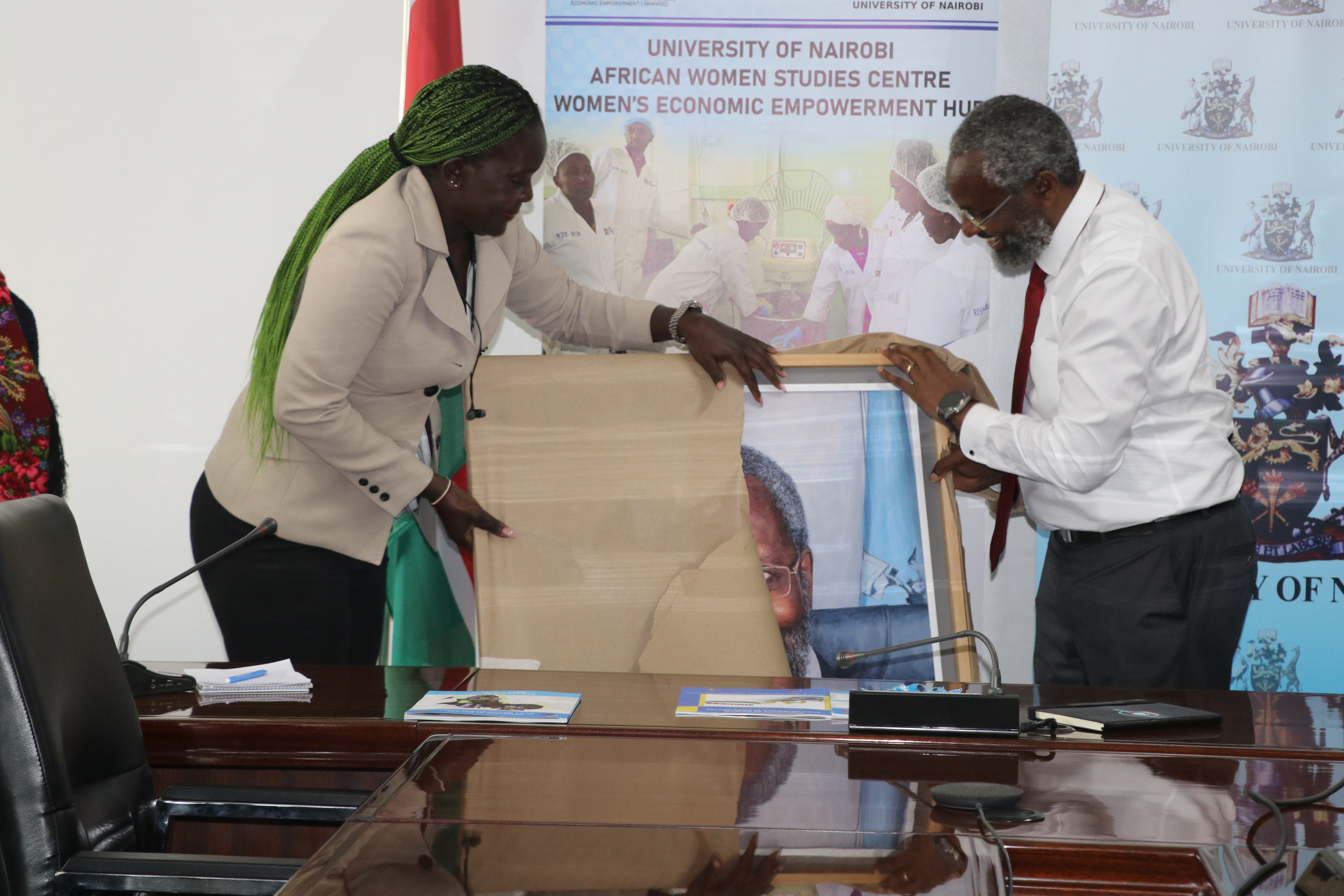 On 24th June 2024, the WEE Hub team, led by Prof. Wanjiku Kabira, gathered at the University of Nairobi Main Campus to officially launch the AWSC Strategic Plan 2024-2029. The Strategic Plan, which outlines the key programs and initiatives for the next five years, was presented to the UoN Vice Chancellor, Prof. Stephen Kiama.