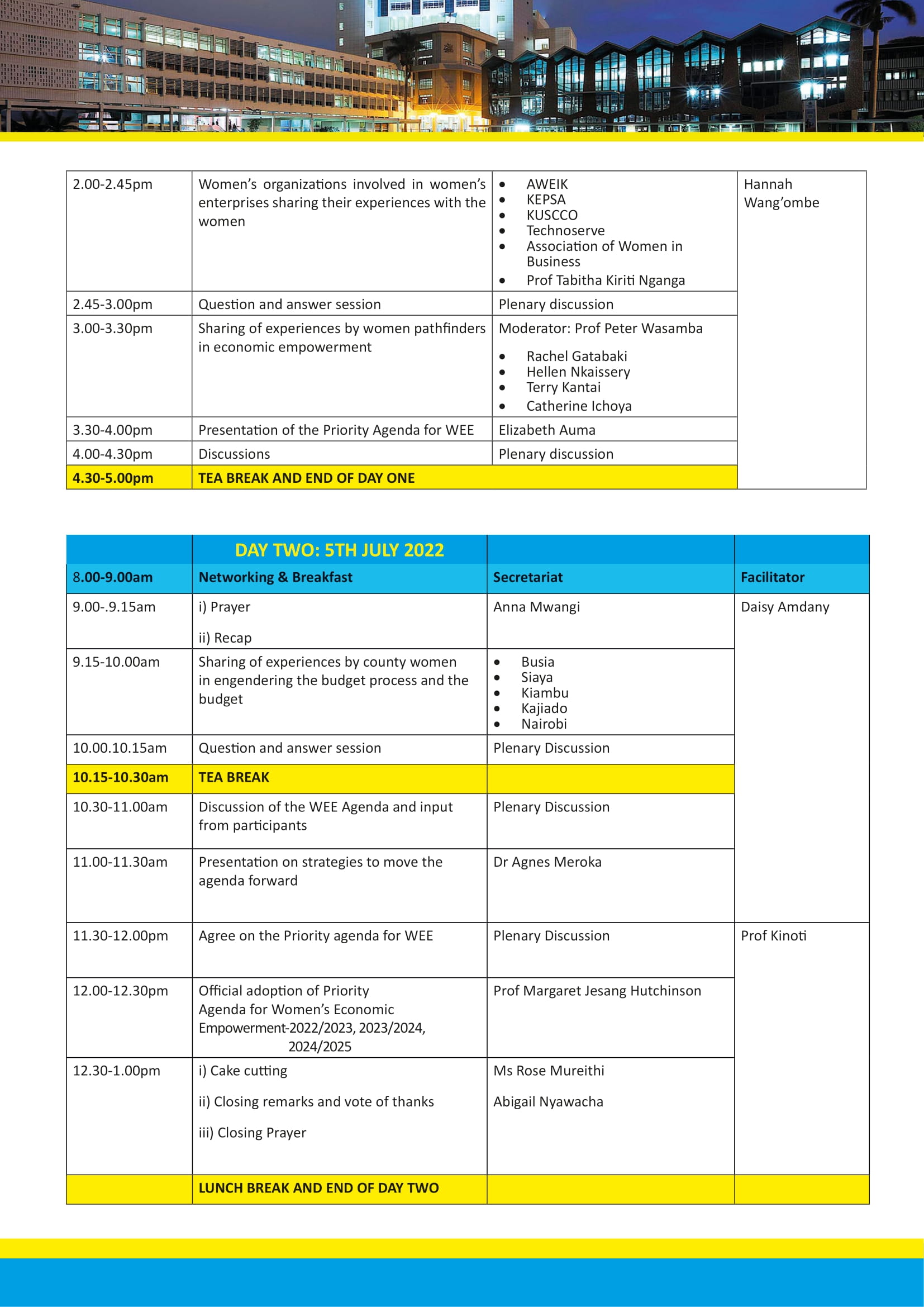 NATIONAL CONSULTATIVE MEETING FOR WOMEN'S PRIORITY AGENDA