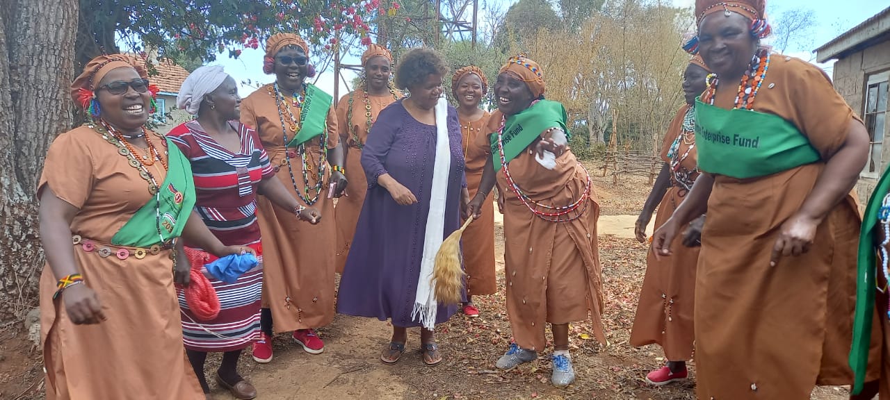 WEE Hub leader Prof Wanjiku Kabira with women's collective in Nyeri supported by Women's Enterprise Fund.