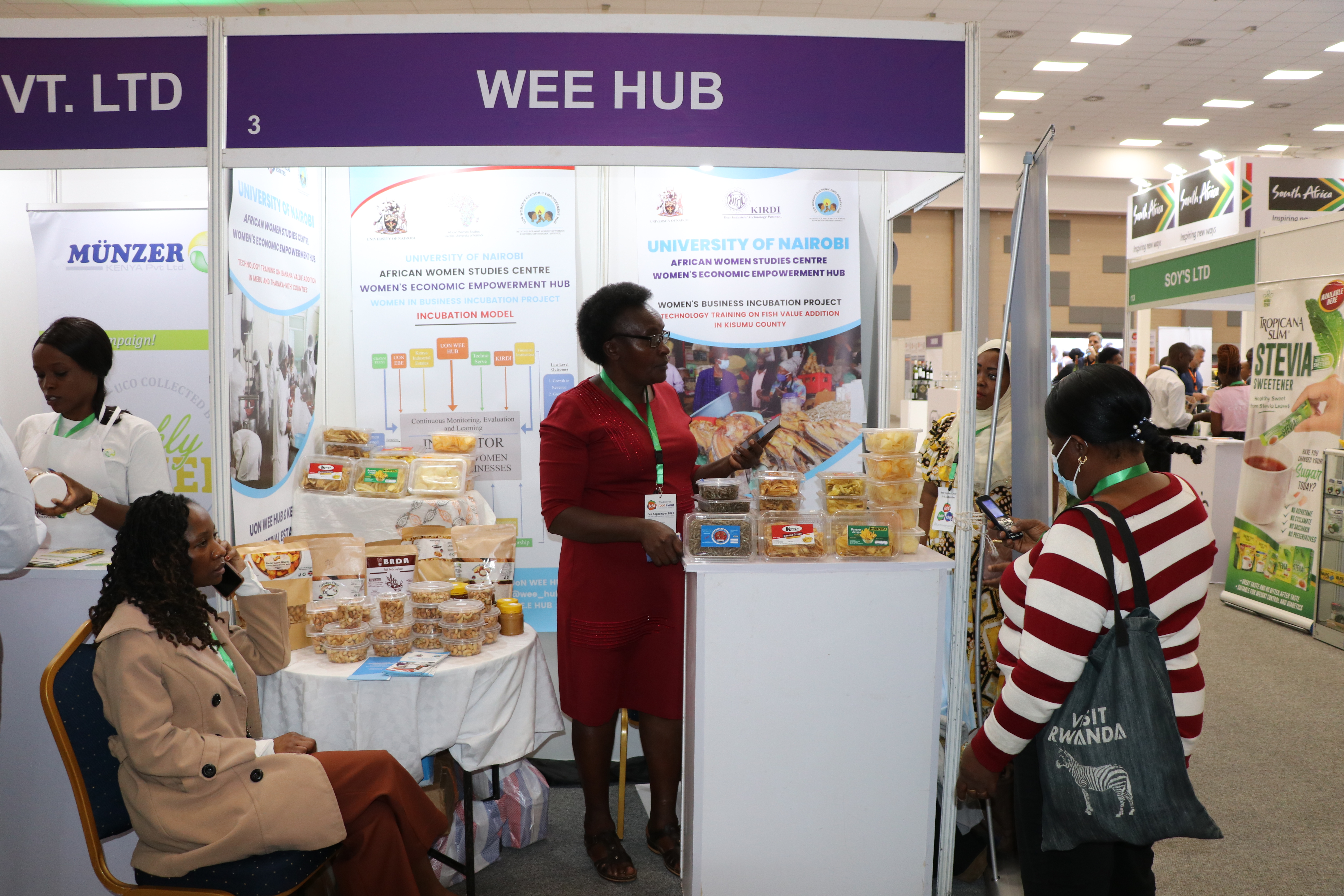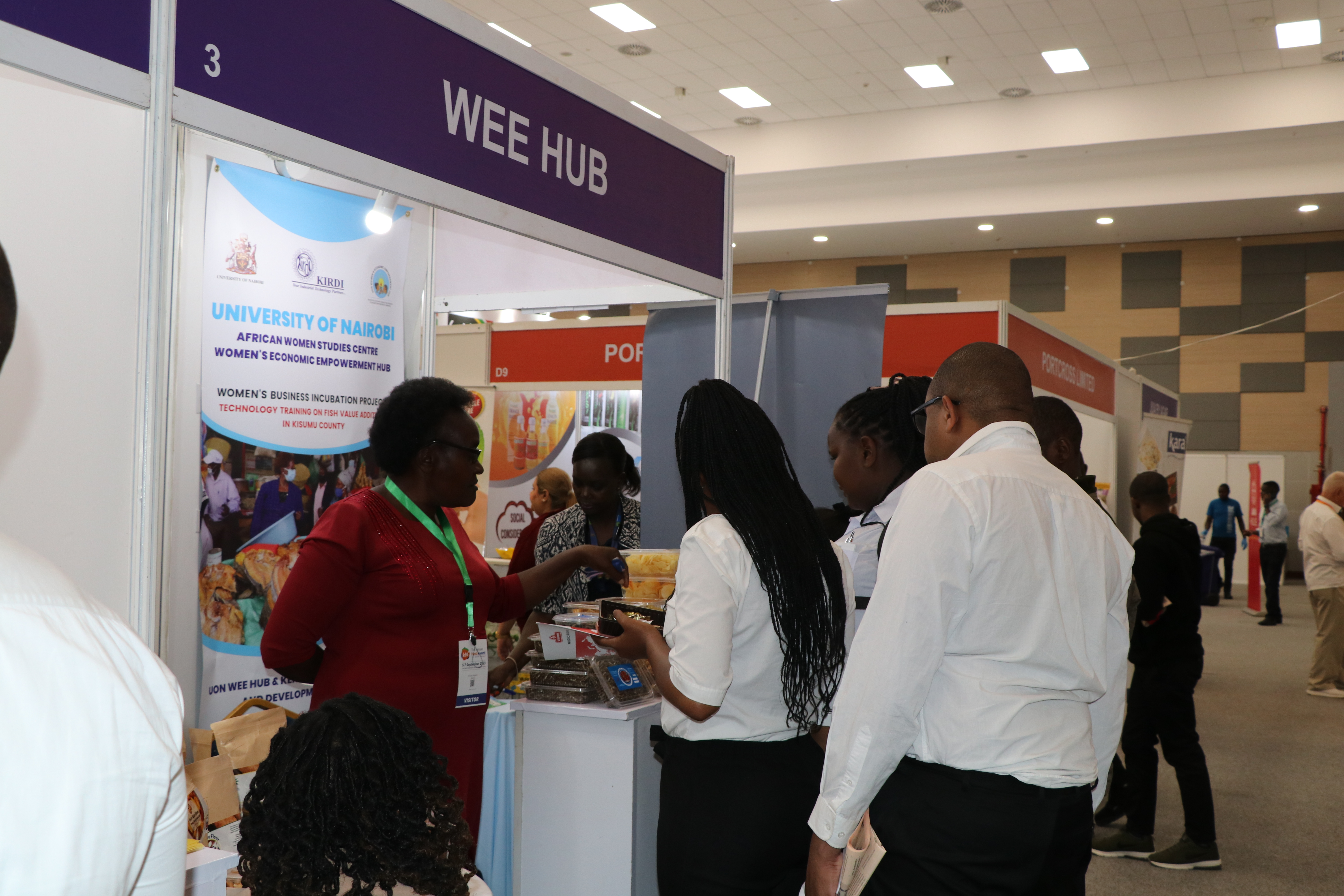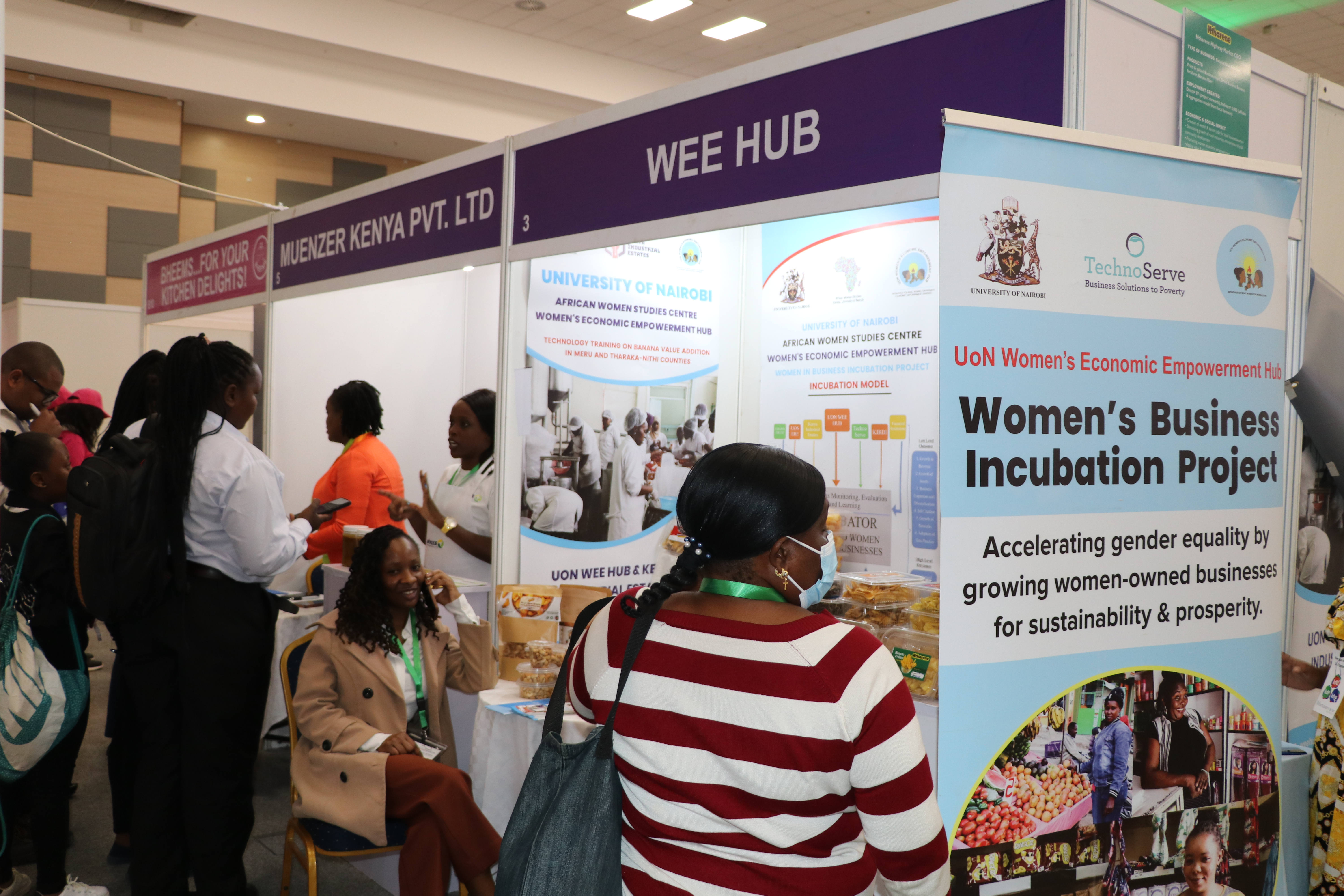 The women had an opportunity to exhibit their products, market, sell, and network with other international exhibitors in various food categories. The three-day event was opened on September 5, 2023, and ran for three days until September 7th, 2023. The UoN WEE Hub Director of Research, Dr. Mary Mbithi, delivered a presentation at the plenary to explain the incubation model, its process, and intermediate results.
