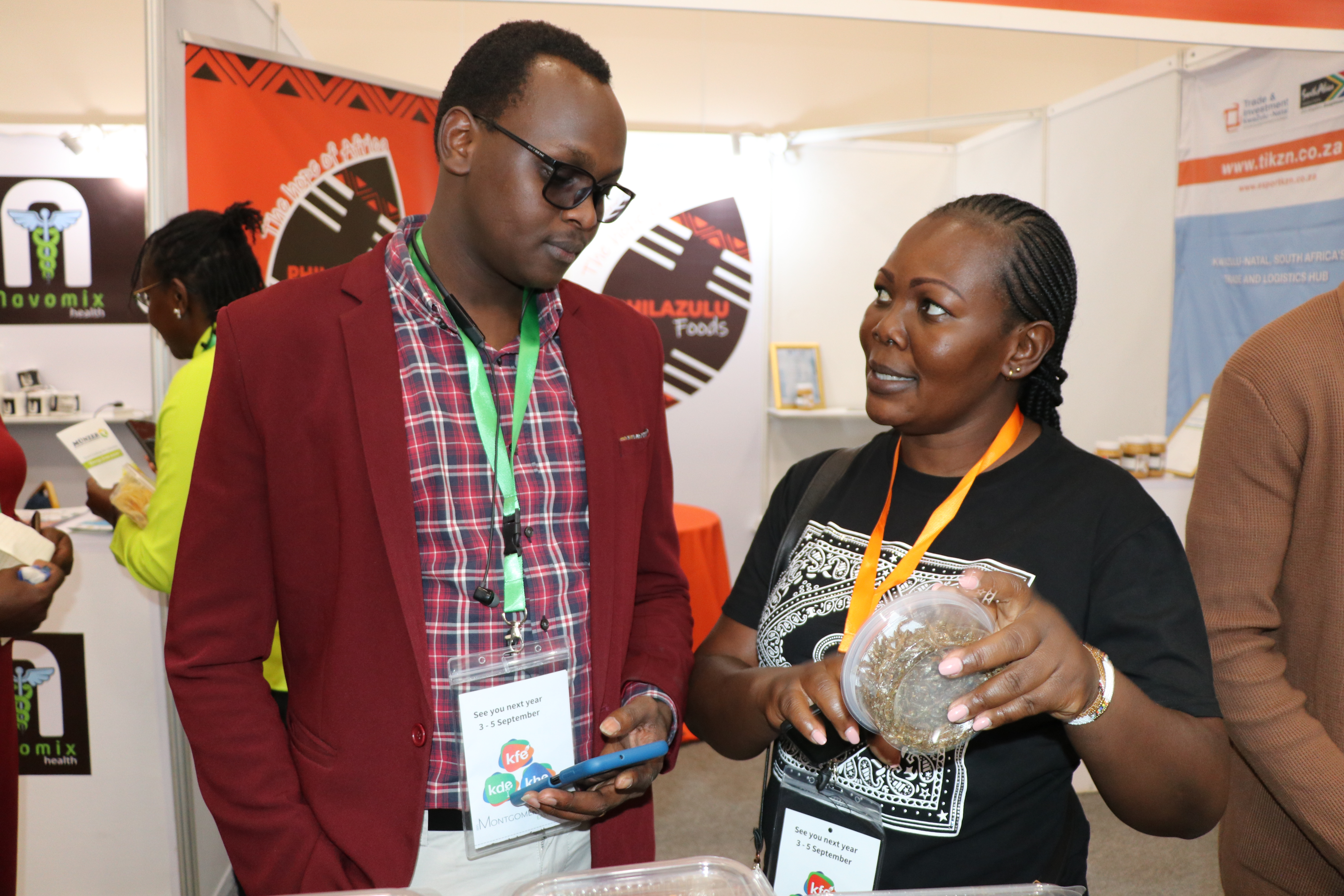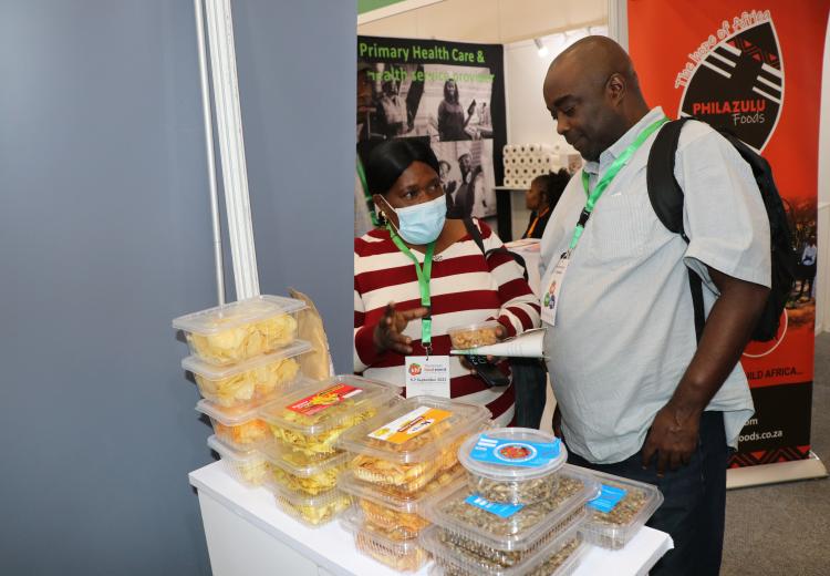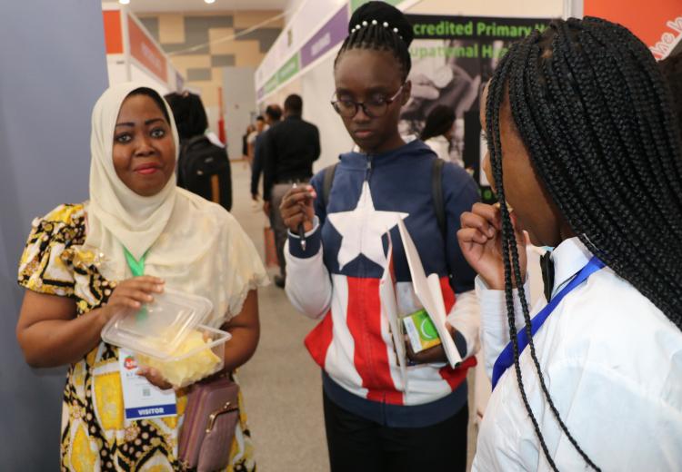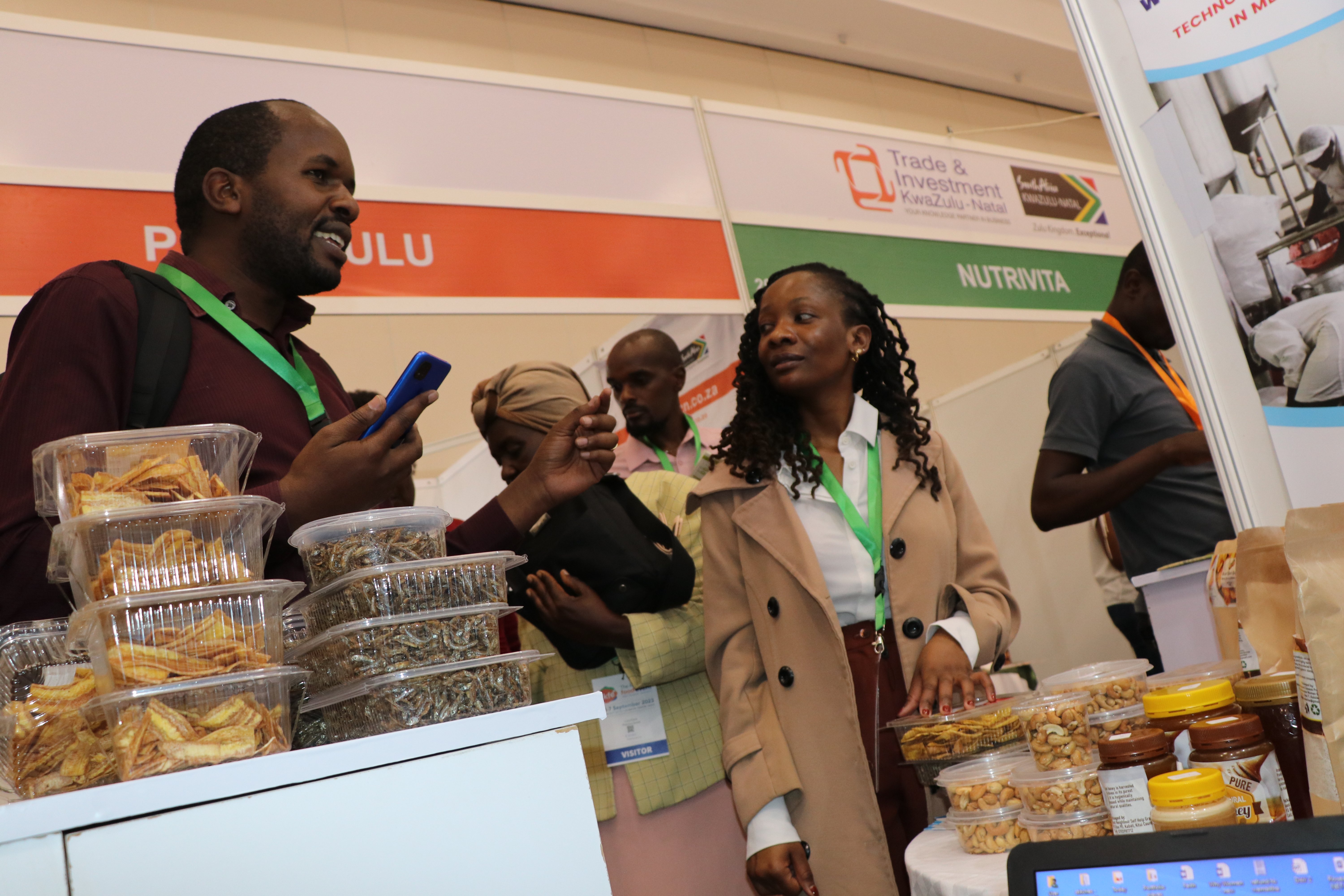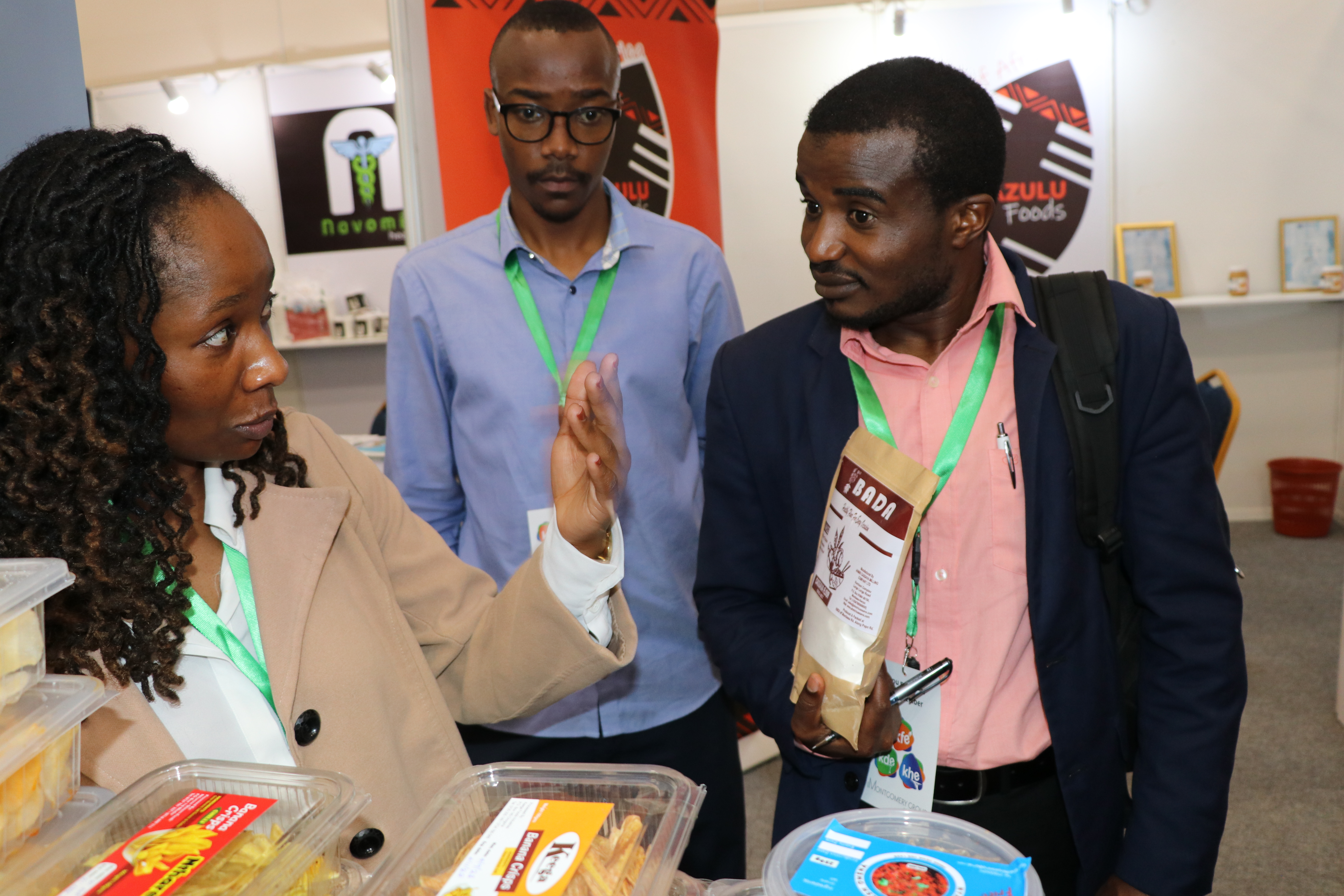 Women entrepreneurs who had undergone technology training on value addition for bananas, cashew nuts, fish, cassava, and honey from Kilifi, Kwale, Kitui, Kisumu, and Meru counties under the Women in Business Project, exhibited at the Kenya Food Event held at the Sarit Centre, Nairobi.