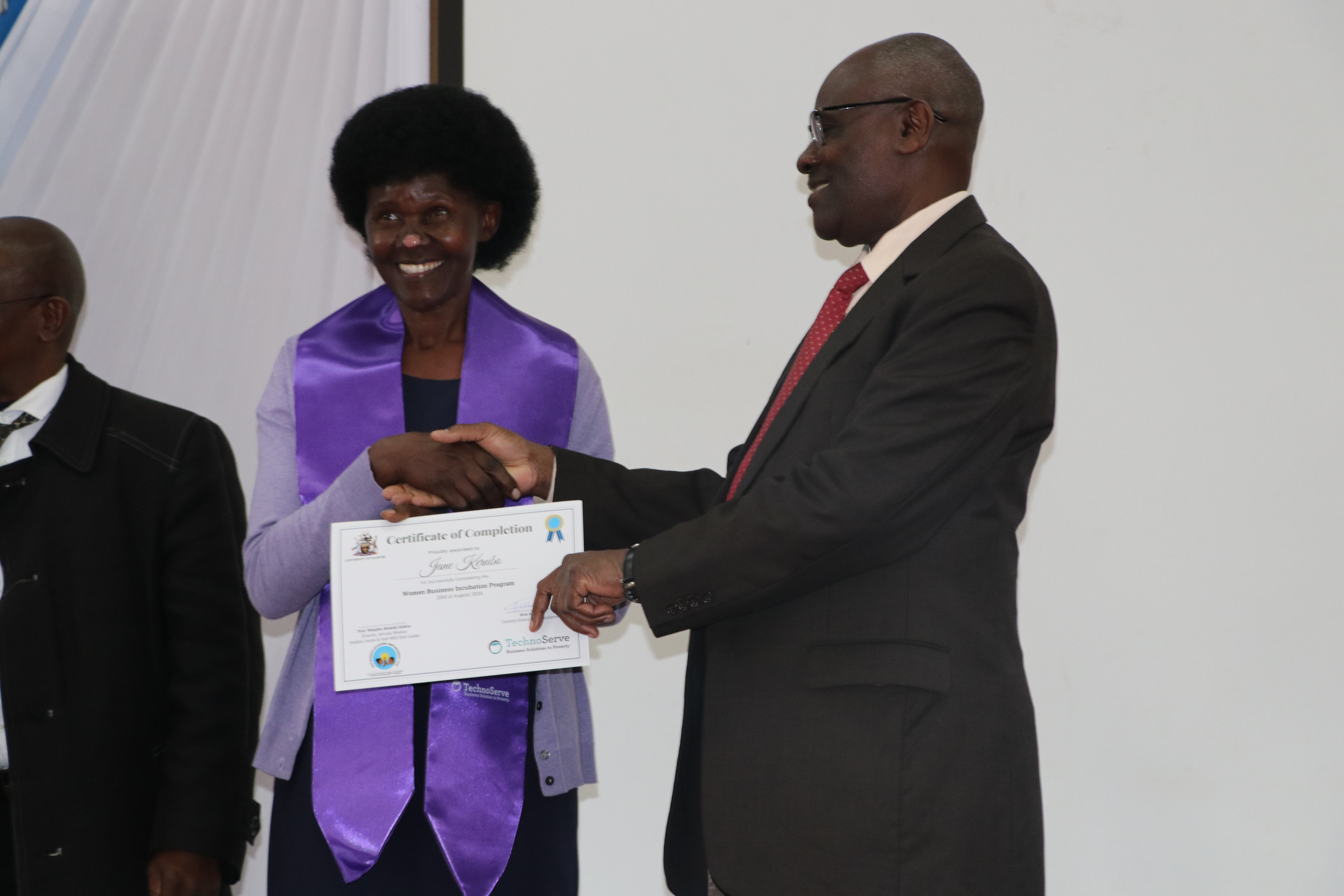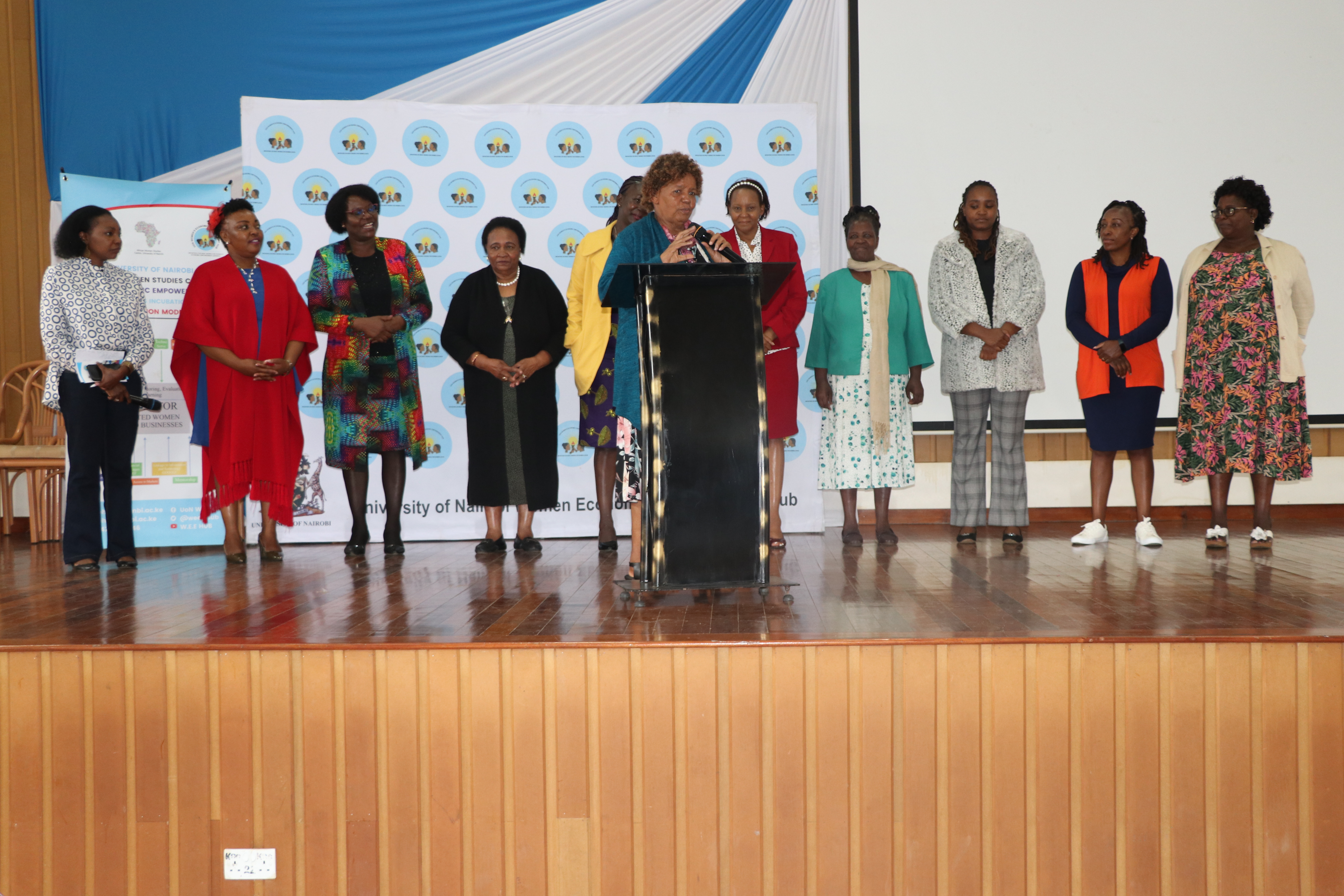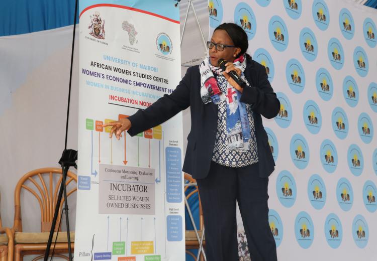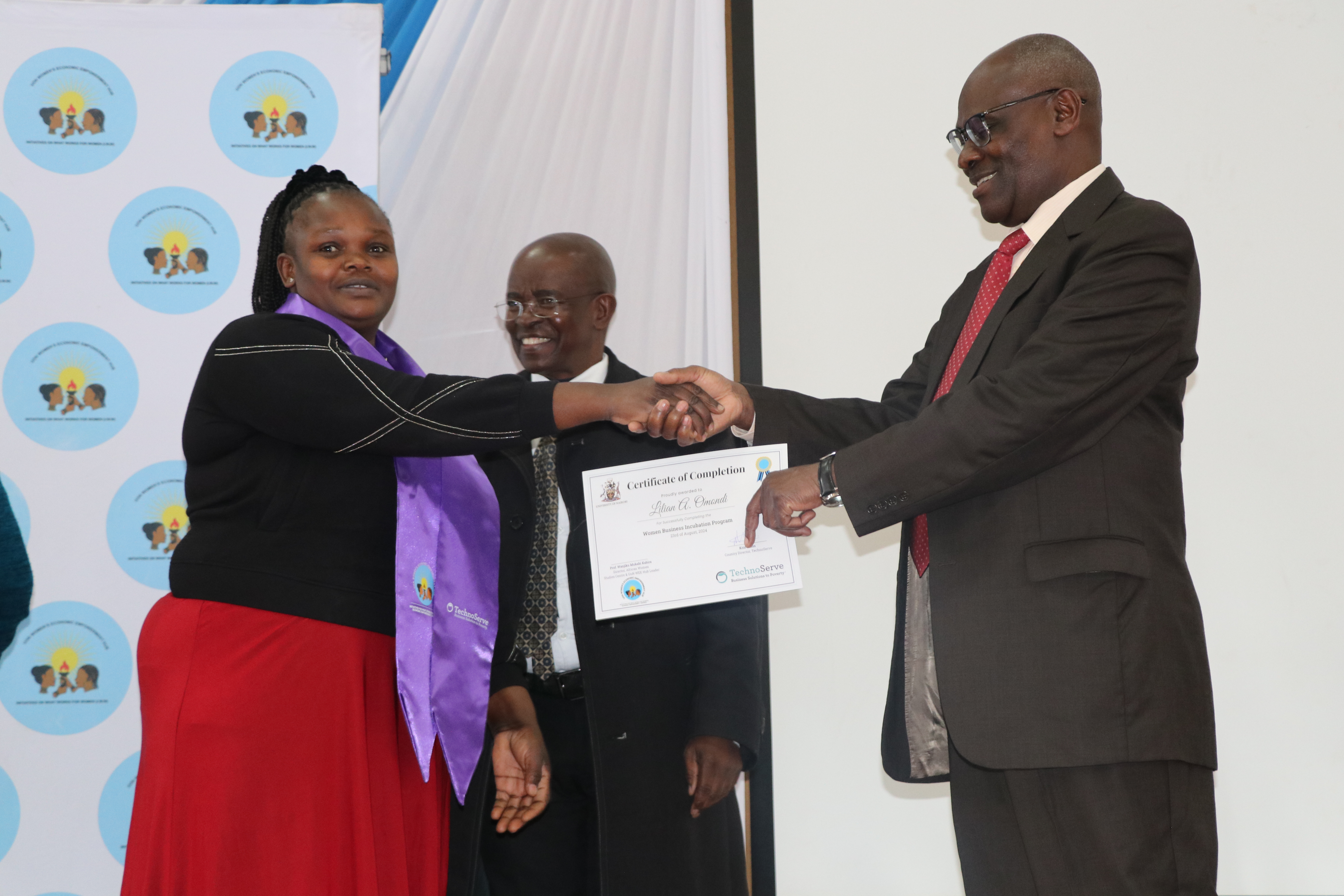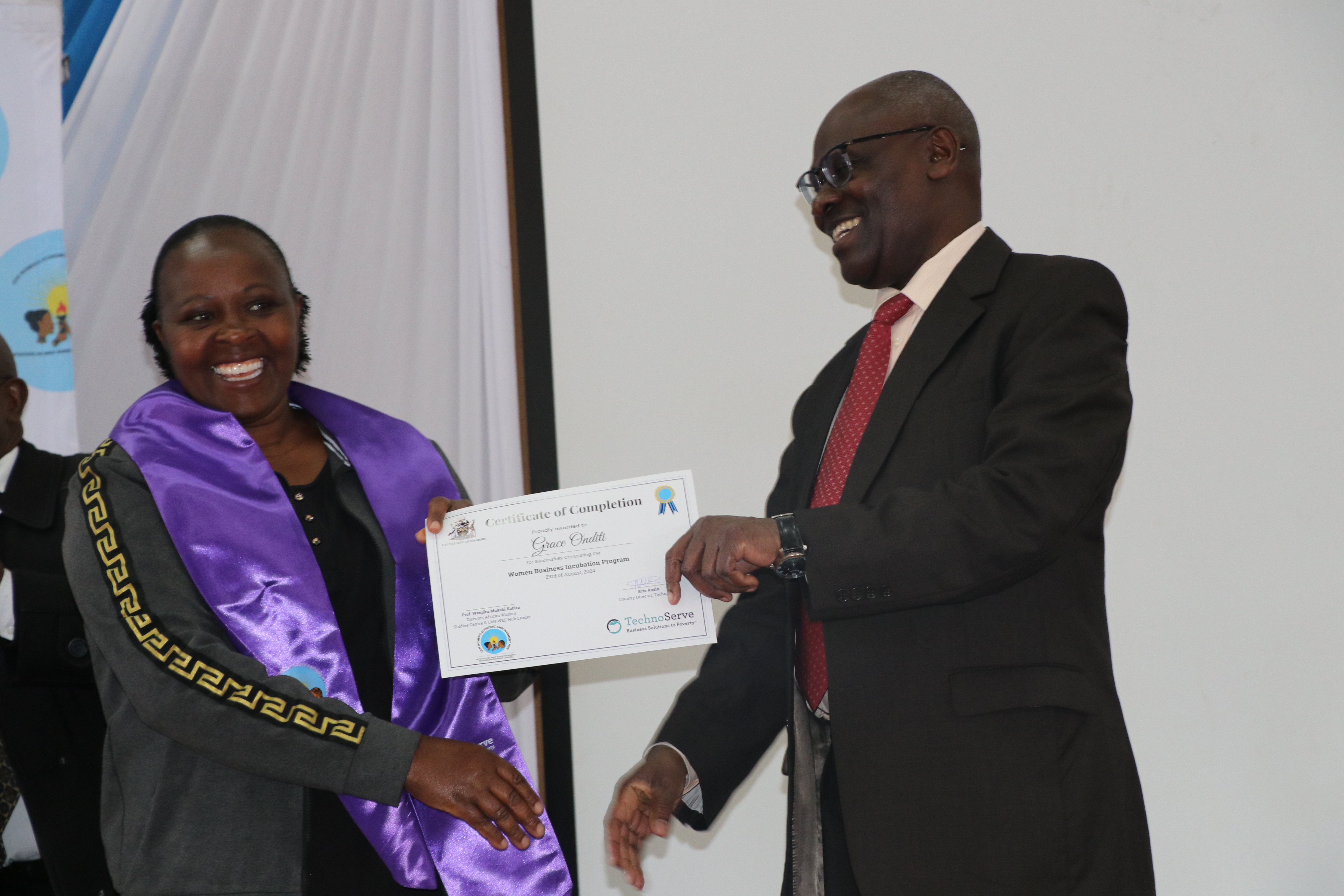 Organized by the WEE Hub and Technoserve, the ceremony was graced by distinguished guests, including UoN Deputy Vice Chancellor for Research, Innovation, and Enterprise, Prof. Francis Mulaa, who delivered the keynote speech. Other notable attendees from the university included Prof. Jack Odhiambo, Dean of the Faculty of Arts and Social Sciences, and Prof. Genevieve Wanjala, representing Associate Dean Prof. Nelson Amugune.