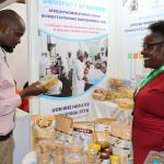 Women entrepreneurs who had undergone technology training on value addition for bananas, cashew nuts, fish, cassava, and honey from Kilifi, Kwale, Kitui, Kisumu, and Meru counties under the Women in Business Project, exhibited at the Kenya Food Event held at the Sarit Centre, Nairobi.